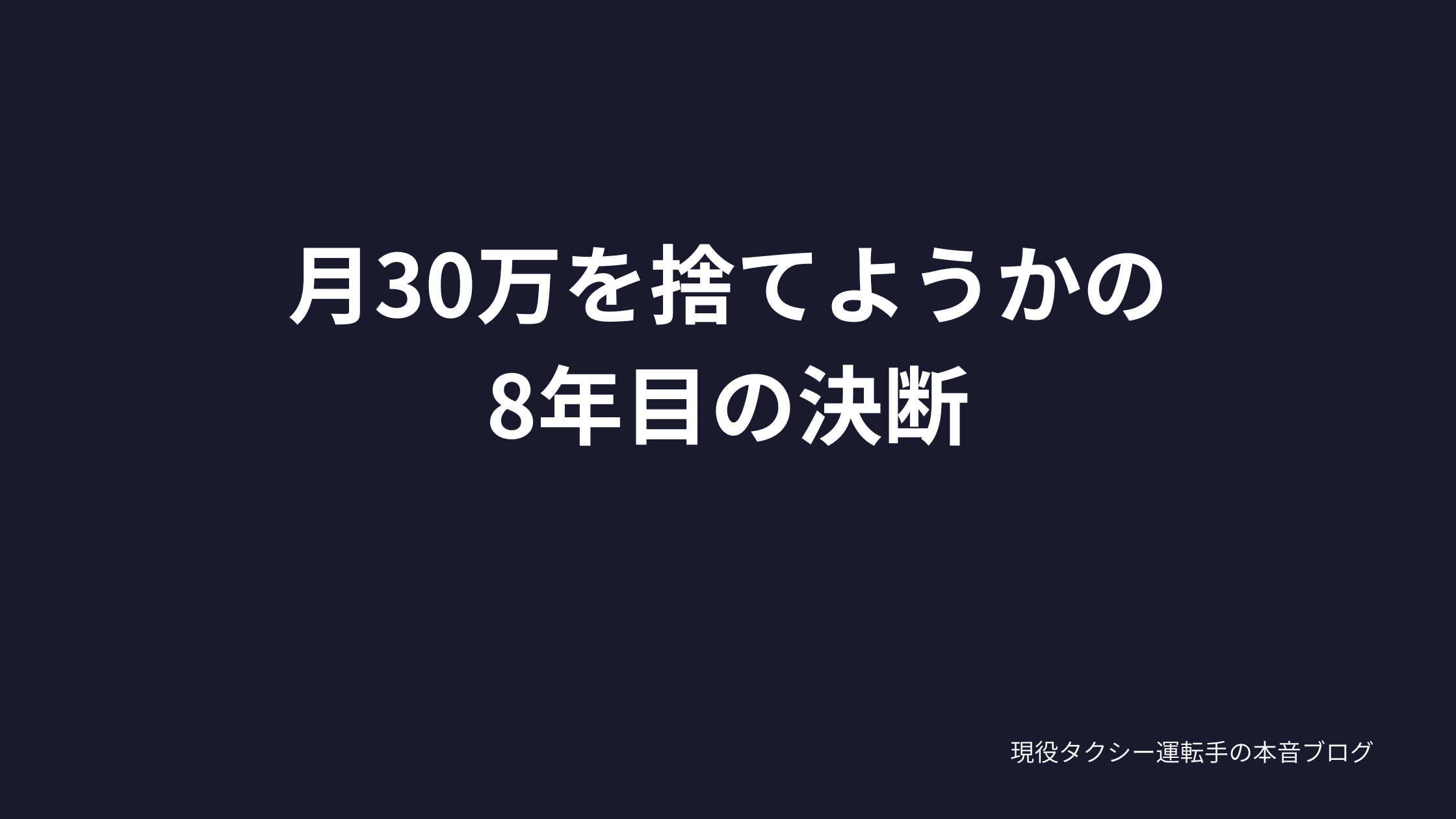 タクシーを8年やってきて、「もうこれ以上ここにいても意味ない」と思った決定的な理由がある。