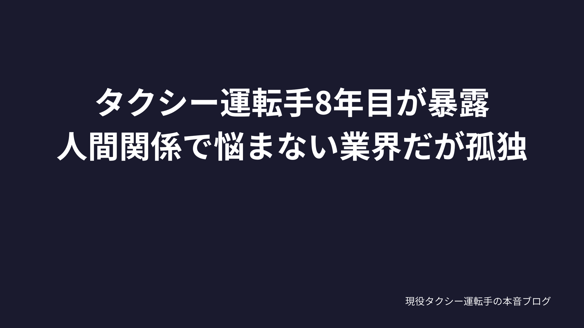 まとめ:タクシーは人間関係で悩まない業界、ただし孤独との戦いはある
