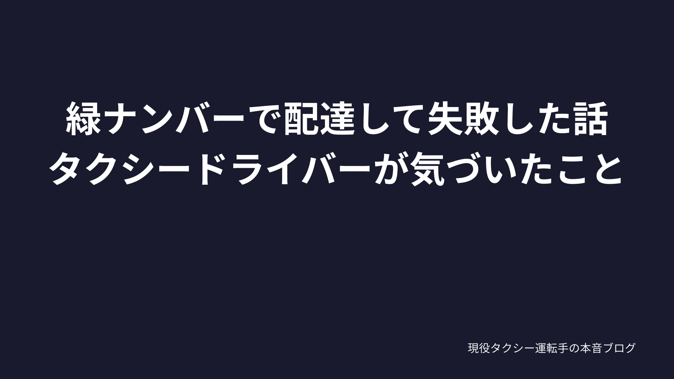 緑ナンバーで配達して失敗した話|タクシードライバーが気づいたこと